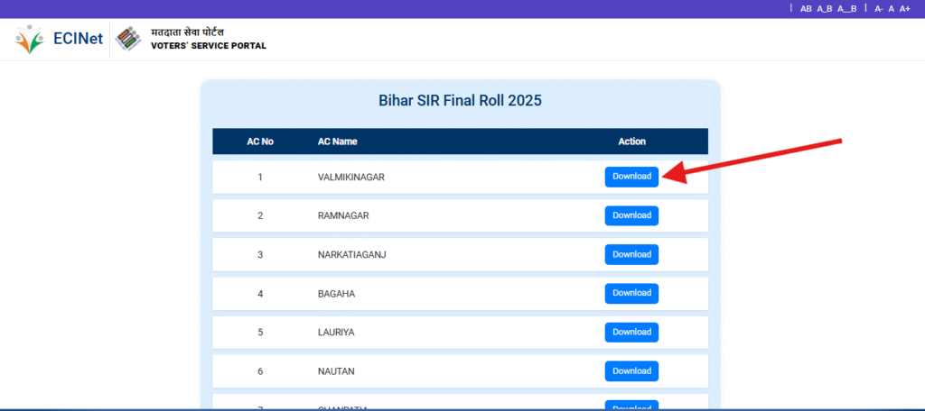 The Election Commission has provided a dedicated webpage for downloading the latest electoral roll PDFs.