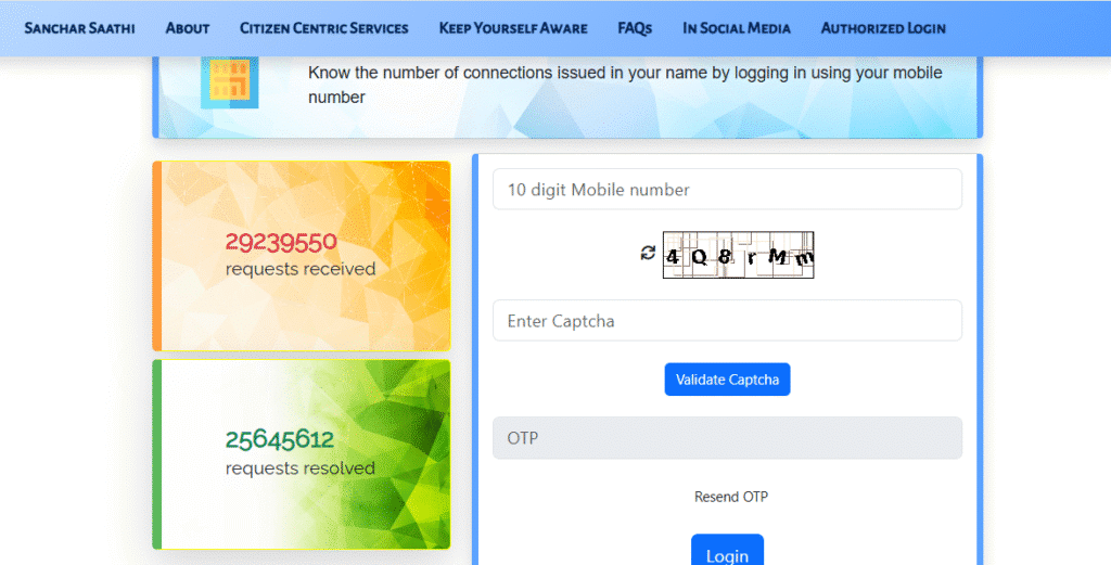 To solve this problem, the Government of India launched Sanchar Saathi — a powerful platform where users can check all mobile SIM cards registered under their Aadhaar/identity. The two most important features of this platform are:
