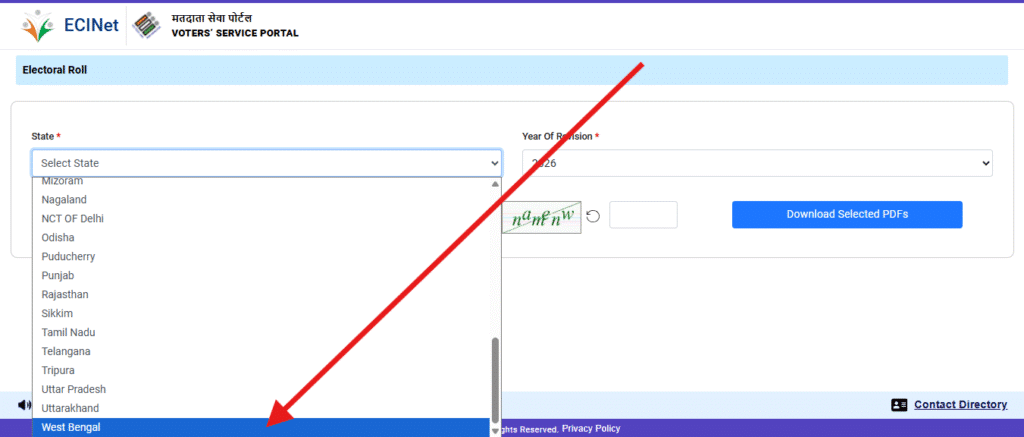 On the home page, you will see a State option. From the drop-down menu, select West Bengal.