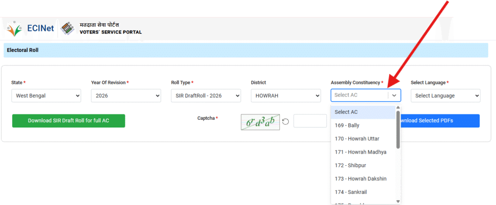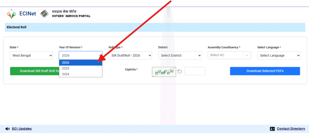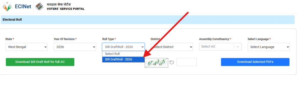 Now go to the Roll Type section. From the available options, select SIR Draft Roll 2026.