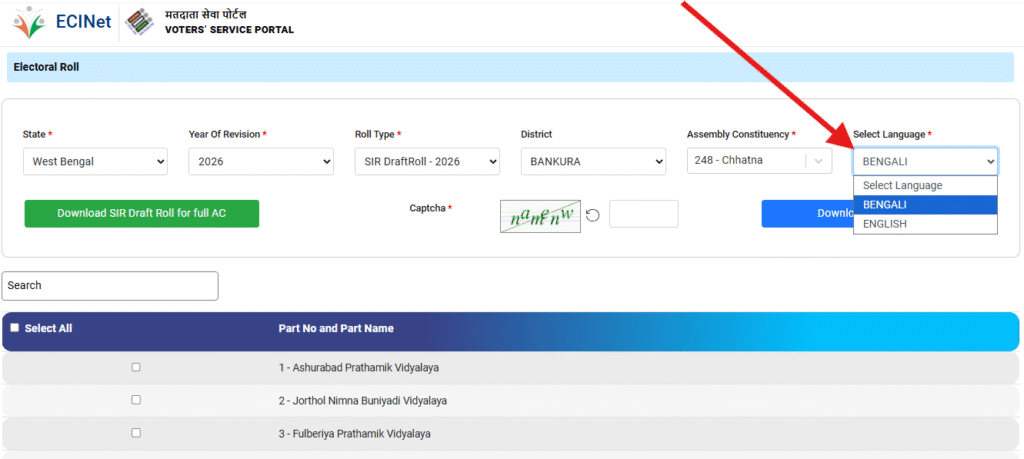 Next, you can choose the language in which you want to download the wb sir list 2026.